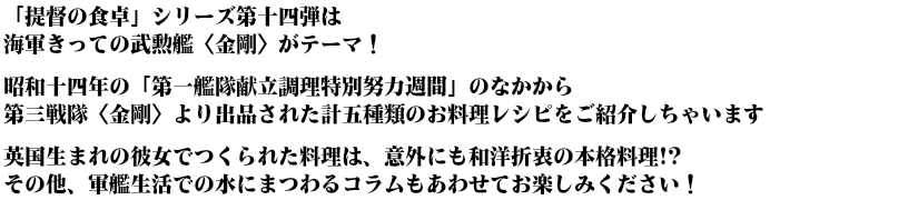 シリーズ第十三弾は第六駆逐隊〈雷〉〈電〉をピックアップ 彼女たちが昭和十年につくった特徴あふれるメニューの数々を 最新の考証に基づいて完全再現しちゃいます!!