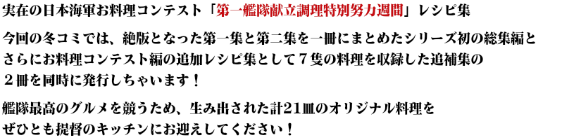 「提督の食卓 第一集・第二集」「提督の食卓 追補集」、書籍版は完売しました。